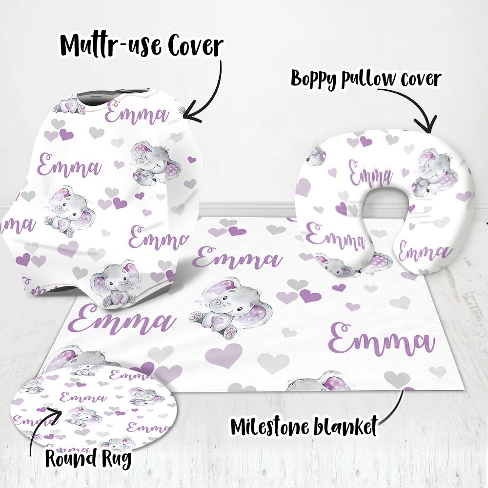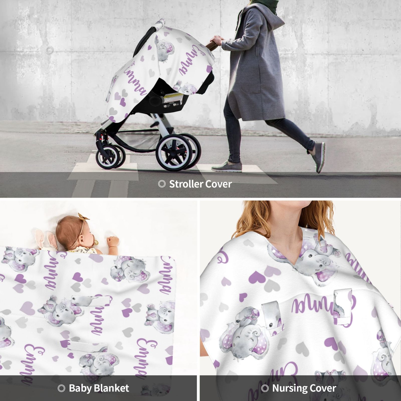 Personalized Baby Elephant Car Seat Canopy for Comfort & Unique| C08