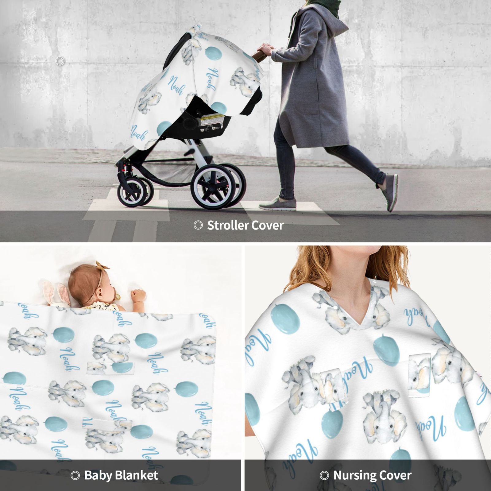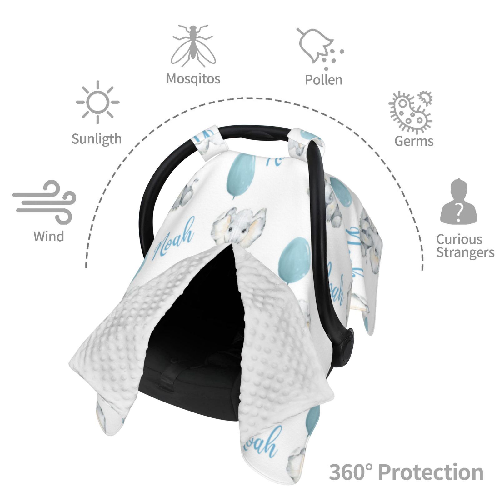 Personalized Baby Elephant Car Seat Canopy for Comfort & Unique| C12