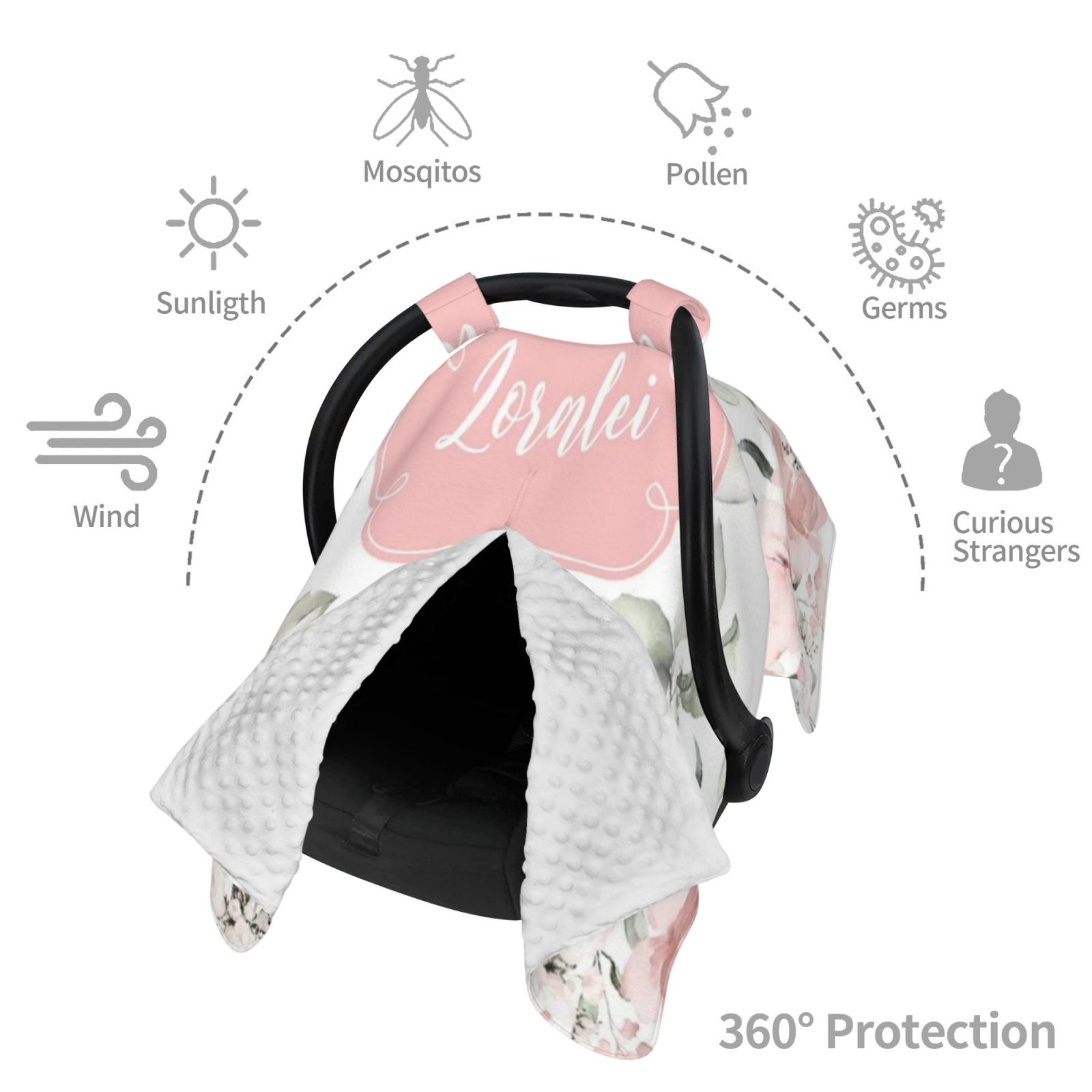 Personalize the car seat canopy to keep your baby warm and cozy! At Soufeball, we want to keep your baby warm with a personalized car seat canopy. Every minute counts. Custom car seat canopies, each of our products is treated and personalized to perfection. We believe it will be the perfect gift for your loved ones.