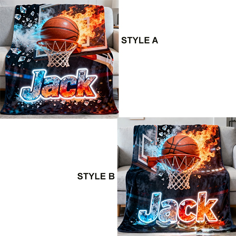 Celebrate your love for basketball with this personalized blanket! Featuring a detailed basketball on a glowing court and your custom name, it’s a perfect gift for players, fans, or anyone who enjoys the sport. Great for staying warm while watching games or relaxing at home!