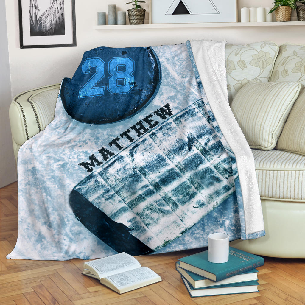 Personalized Blue Ice Hockey Blanket For Comfort & Unique|BKKid265