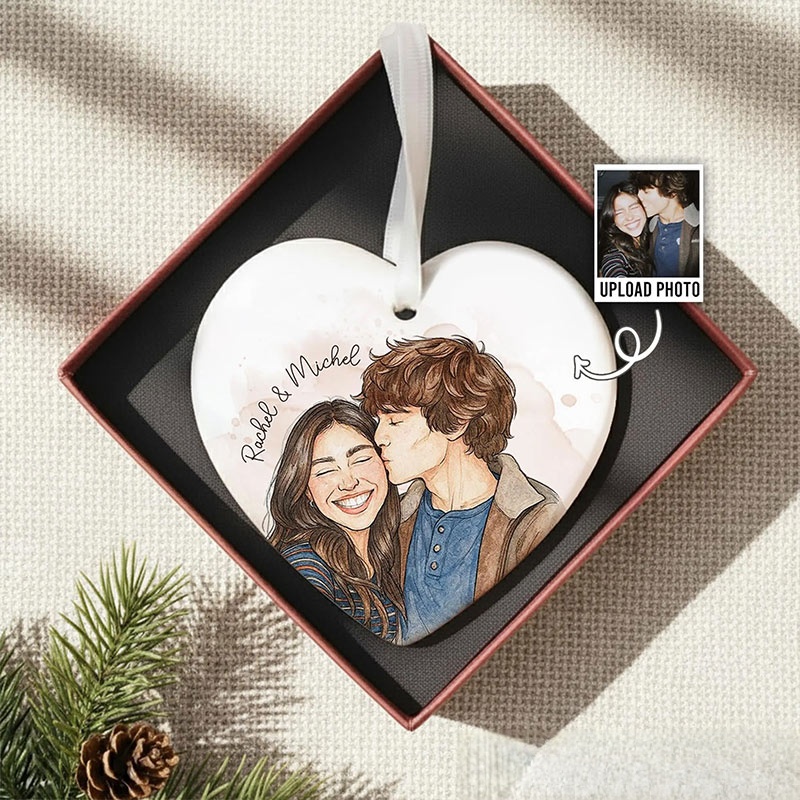 Turn your love story into art with the Custom Cartoon Couple Ornament! Upload your favorite photo, and we’ll transform it into a charming cartoon keepsake complete with your names. This ornament says, “We’re not just decor—we’re your love story in miniature!” Perfect for couples who adore personalized, quirky treasures. Hang it, cherish it, and let it tell your tale!