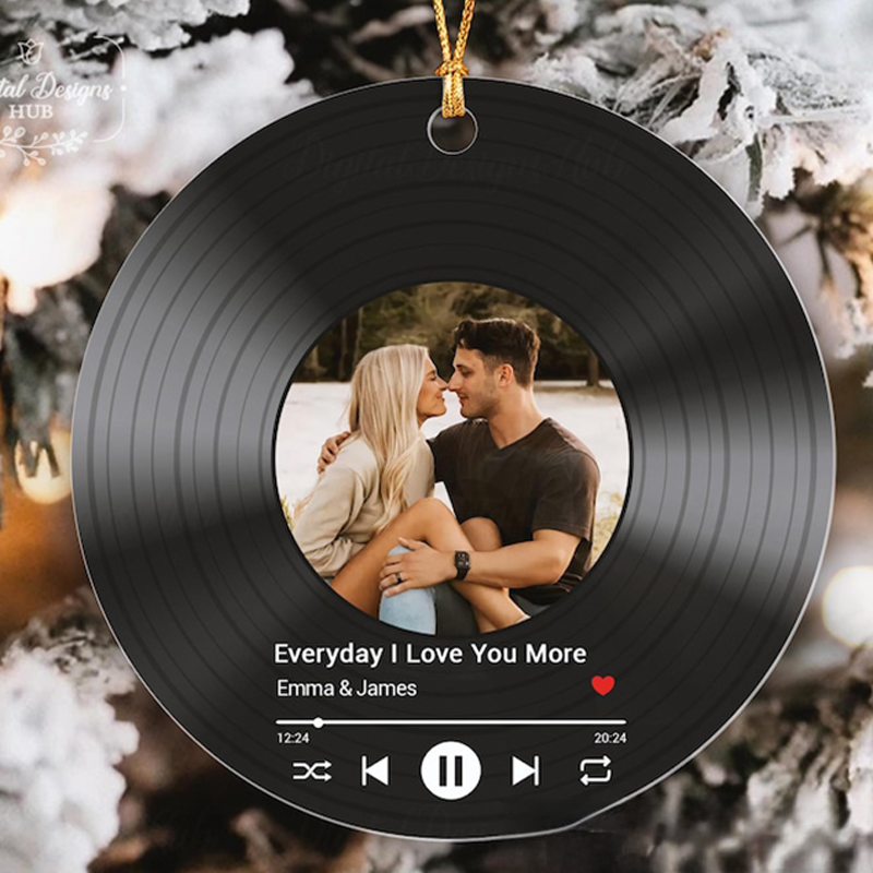 Personalized Song Photo Ornament and Couple Vinyl Record Christmas Ornament and Personalized Couple Song Photo Ornament and Couple Xmas Keepsake